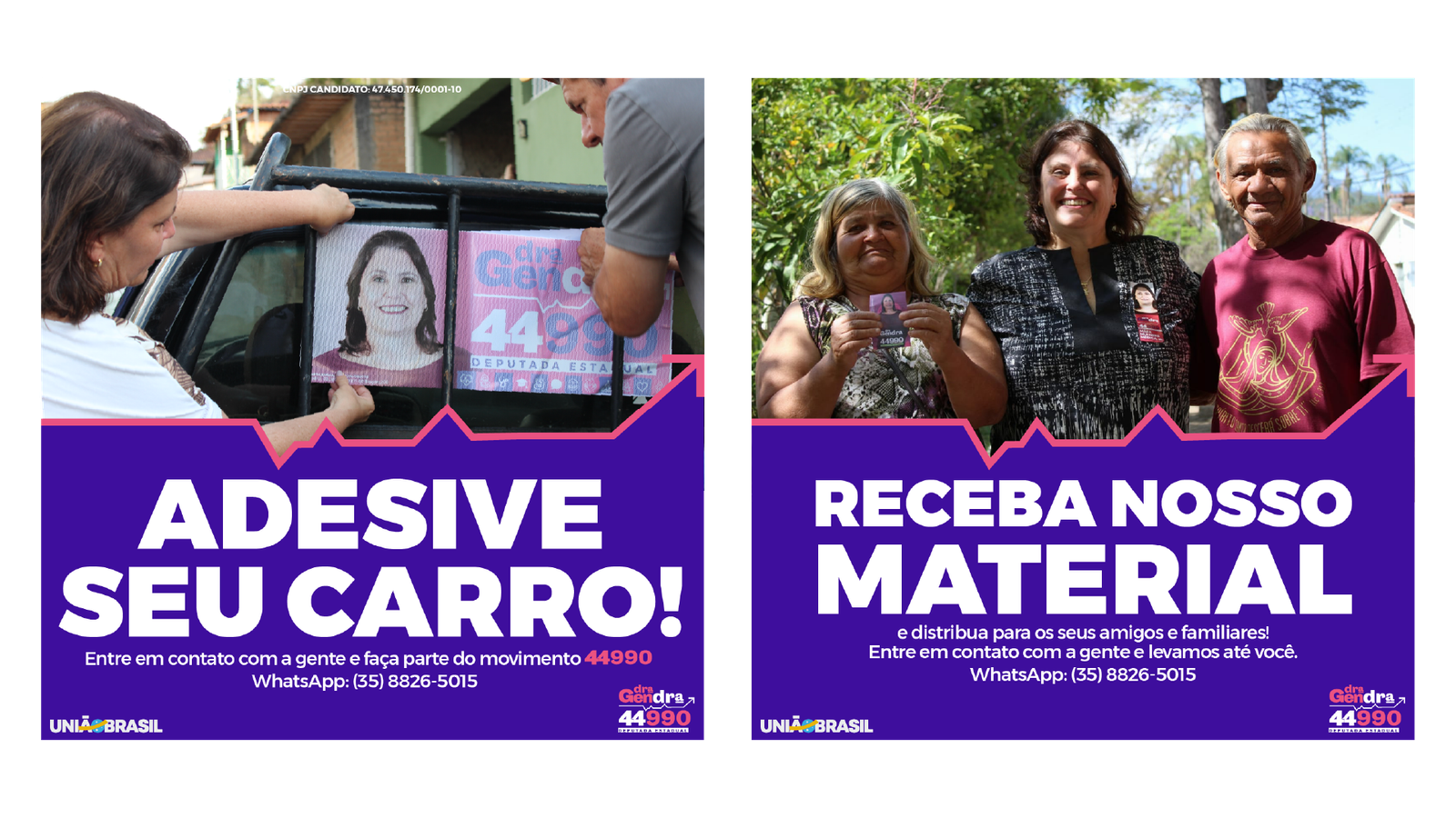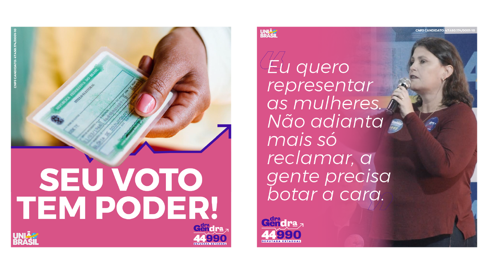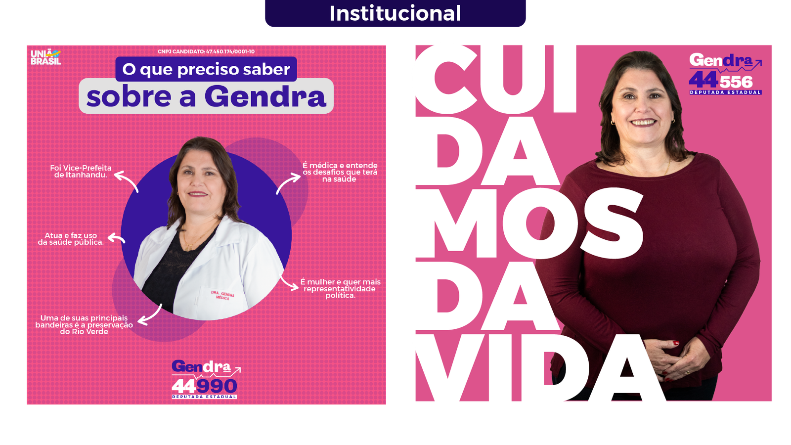 Desenvolvemos uma campanha que traduz a essência da Doutora Gendra: comprometimento com a saúde pública, justiça social e desenvolvimento regional. Com uma identidade visual marcante e mensagens claras, conectamos a candidata ao eleitorado de forma autêntica e impactante.